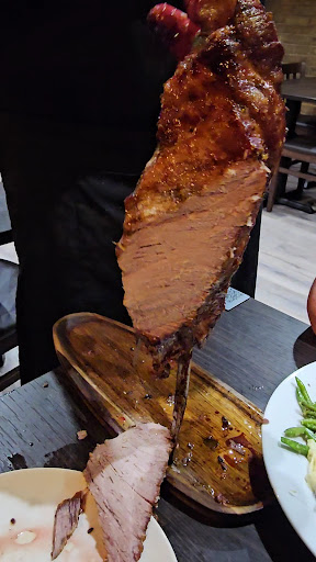 Rice, beans, spicy beans, fried cabbage, lasagne, chips, beef and salad and you can get seconds thirds etc AND the grilled meat brought to your table and Jon Paul (not sure if I got his name right) carves teh meat off for you, rump, sirloin, homemade sausage (delicious) and beef rib.
