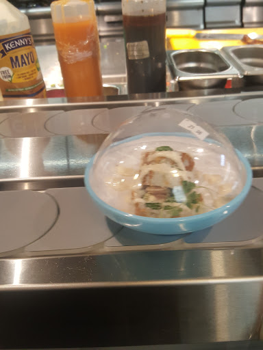 Where to begin: Greated by 4 different staff 30 seconds apart, to be seated. 3 tables hadnt been cleared and i asked if it was busy earlier, answer it hadnt been busy for the last 30mins. So why were tables not cleaned? Manager seemed more interested in stroking his ego than managing his restaurant. We recieved dirty plates, and a staff member insisted it was clean as they were just washed. I think the food still visible on the plate should have given it away that it was not clean. The staff had no clue and no direction, seemed like an after school club than a 'dine in' restaurant. You would think ordering food using a QR code would seem easy and you would assume staff would be attentive and clued up. However, staff waited by the ticket machine for orders, recieved soft drinks without ice, asked for ice his eyes rolled like i was becoming a problem. Yo! has literally taken the experience of going into a 'dine in' restaurant and turned it into a order and sit restaurant. McDonalds does this experience better as you order on the app or interactive screens and stsff deliver to your table. You cant remove mistaken additions on the website and have to go to the staff to get items removed, however staff dont go to tables as they huddle around the ticket machine. Problem was staff never check in on customers and they want a 12.5% service tip for what is essentially self service. 4 . The food was shocking, sashimi was hacked to death, like a cat had chewed it. The sushi rolls were really small (4 bitesize pieces), and charging £6+. The tuna was clearly canned, no way tuna looks that grey at a sushi restaurant. Miso was from a vending machine, basically a japanese 'cupasoup', not even fresh, no wonder its unlimited if you can even get it as the staff dont know which staff member is looking after which table. Again bad manager equals bad service. The sushi was warm and the rice was stale and had hardened around the edges. Basically the sushi had done the rounds in the carousel for a while. Sushi should be served fresh, in Japan the sushi restaurant is always cool so the fish doesnt spoil so stays cool, this place was literally hot so obviously the taste is gone.