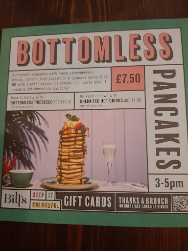 Read moreCame here with my daughter as a 13th birthday surprise. We got seated pretty quickly as the restaurant wasn't overly busy at the time of arrival and were advised that Bill's is cashless, which was fine for us but good for others to be aware of. Although we indicated at the time of seating that were going for the bottomless pancakes for us all, it took a good 10 to 15 minutes for someone to come and take our order. Ordered 1 speciality coffee (decaf oat milk latte) A normal latte and 2 hot chocolates with cream for both my children.