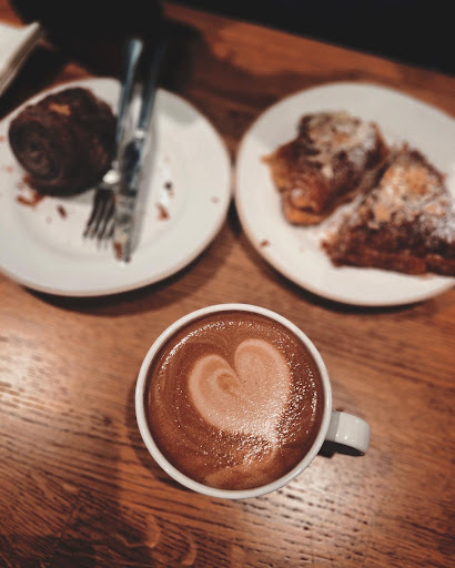 The place is busy, often with a queue; I decided to try it in a quieter moment. It is a clean, airy place with a nice seating area. There are on display a variety of good-looking pastries, food I normally do not eat, but I tried a tiny bun (perhaps 2in diameter) with chocolate drops, and a double espresso. The bun was good - maybe a tad undercooked, but I enjoyed it. The espresso unfortunately was rather bad, acidic and at the same time bland. The staff are cheerful but the service was not great; I was erroneously served the espresso in a paper cup (despite having paid the table surcharge) and at my request the coffee, instead of being brewed again, was simply poured in a porcelain cup of the wrong shape (a small cylindrical mug instead of a narrow-bottom cup), thick and without handle. The prices are high and frankly I don't think they are justified by the quality. Two stars because the bun was nice; in general,...