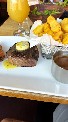 Me and my partner dined there tonight after reading some great reviews, although some reviews complained of poor service we decided to overlook this as i know people are only human and sometimes things dont go as planned! But sadly tonight we experienced the same! Table was booked for 8.30 in which we arrived bang on time. The table wasnt ready for us and we were asked to sit at the bar for a minute or two..... no dramas there. We ordered drinks and then got immediately brought to our table. 15mins later the drinks still hadnt arrived. This got resolved shortly after as the manager came to take our drinks order, unaware we had already ordered. We then began to look through the menu and 10mins later the waiter came and took our order...... for us only to find out that they have a specials menu that was shown to a table next to us but we were not shown or even told about! Starters arrived in a timely fashion, the calamari very nice and the brushetta an impressive portion size! The manager came and ask if we were ok for drinks in which i ordered a JD and diet coke, the waitress returned with JD and full fat coke but was corrected for me. Once we finished starters a waiter came and collected our plates and asked if i wanted anymore drinks in which i proceeded to look through the wine list and asked if he could pop back. Sadly he never and it took 45mins before anyone came back. Mains arrived. My fillet steak was perfect! My partner ordered slow cooked ribs..... defo not slow cooked. Burnt on the outside and not exactly falling of the bone, quite tough in places. Mains finished and we asked for the bill, paid and left. Service charge was added to the bill already in which i would of contested but simply could not be bothered! Summing up my experience i would say the food is good not great. The service is shocking. The prices are on the high side with regards to the food quality and service. It seemed under staffed mainly due to the fact the 3 waiting staff were rushed off there feet whilst the manager stood talking to what seemed to be friends at the bar for a very long while. To the extend that even the bar man had to start delivering drinks to tables. Im interested to see if this review gets a reply as whilst looking through the reviews ive noticed the owner only replies to the 5 star...