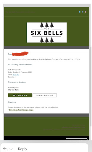 Most importantly, staff were excellent when it came to my sons allergies. Anyone with severe allergies knows its difficult to find 'safe' places to eat. The Six Bells where excellent, they where really accommodating around making him something he could eat and staff where diligent around his food so we could relax and enjoy our meal without worrying about him and his food. Staff where all really friendly to him about his allergy and made sure he didn't feel separated (some places make a massive fuss and leaving him feeling anxious to eat, and this was not the case here!) We will definitely be bringing him back!