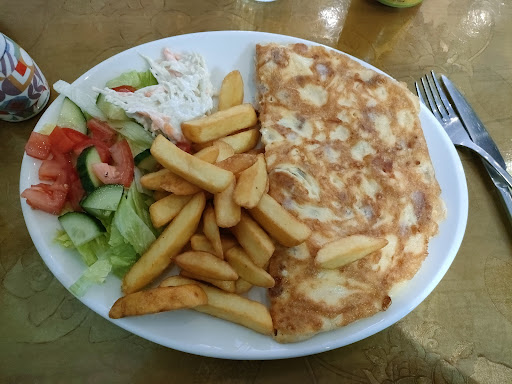 I purchased a bacon and cheese omelette with chips and salad. The omelette was nicely cooked but the chips were a little overcooked.