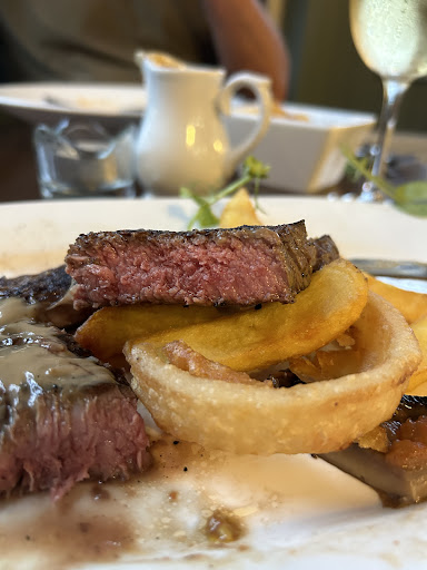 The Red Lion pub was very nicely decorated with Winnie the Pooh information on the walls giving a talking point. The staff operated a 1 way system in the pub and were timely toward the wife and l attending. Although we did not book all guests were seated with social distance in mind. Situated towards the middle of Ashdown forest the menu was reasonable but a little expensive for pub food. Car park and over flow car park were ample but a little bumpy. Menu scalable. The wife and l had a nice cooked venison pie with mash £17.95 and a Ribeye steak £25 with some of the best chips we have ever had. My wife's mixed berry pavlova was worth all £7 charged for it but the apple crumble l would say quite lame £7 for a small portion not so good portion size. I could have eaten two, the apple almost puree not pieces. The vanilla custard was very good. I would recommend the pub. The young waitress said they were in a chain of 3 and worked at the bull hence the uniform she had on. Smart, pretty and attentive to detail. Toilets average but clean. Huge marquee in garden area. Downside, smoking area directly outside exit so if non smoker as l am you walked through others second had smoke not pleasant unfortunately. Would have been better to clearly label different location....
