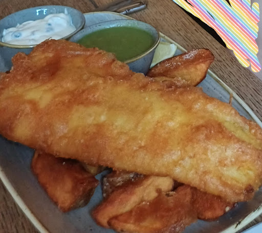 Read moreWe had a nice meal here on Sunday . It was very busy and we had to book our table , which I think goes for most good restaurants in every case. The car park was full , both front and back , unfortunately a number of dog walkers were parking there to walk their dogs , so we had to park on the grass verge up the road . It was really busy inside and we had our table booked in the second session at 1430 hrs. I have to say in hindsight that it was a lucky decision as it meant we had longer to eat our food. I never like to feel rushed when eating but I won't hang around unnecessarily. There was a wait for the menus and in the meantime we ordered our drinks. The menu is varied, I think the Roasts are their speciality , but three of us went for the Fish and chips. I will say in advance , I like plain cooked tasty food in hood portions. I'm not adverse to sauces and spices but it must be plentiful. I think it nearly reached my expectations, not quite though. A few more Skin on chips , more peas and less batter on a bigger piece of fish that would have achieved another half star. However I would recommend the restaurant and the other meals I saw looked really good. The atmosphere was loud and busy , there was a good feel to the pub and the staff were excellent. We were attended by three females waitresses , they got the drinks order correct and the food order . I day this because that's not always the case in some pubs. The dessert menu was good too. Just enough choices but not overwhelming. The Sticky toffee pudding was fantastic and probably the pub's most popular dish. The rice pudding was excellent too , my wife's favourite. No photos this time as even I felt too self conscious to take them. To sum up , a very good experience and I...