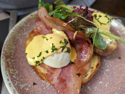 Read moreWe went here for breakfast. The decor is nice and light with a rustic feel. The food was what I would call "rustic posh" 😆 There's no full English option, but the food we had was delicious. I had the Breakfast Stack, which was sausage patties, bacon and an egg sitting on top of rosemary potatoes. I would have loved the potatoes to be crispy but they were new potatoes and still tasty in their own right. It was a really lovely brunch. My wife had the Eggs Benedict and she thought the hollandaise was some of her favourite ever 😋. We had a latte each and the coffee was some of the best available in my opinion - really good. We got an almond croissant (huge!) and slice of cake (more modestly sized but a decent slice) to go. Overall we were very impressed and will no doubt...