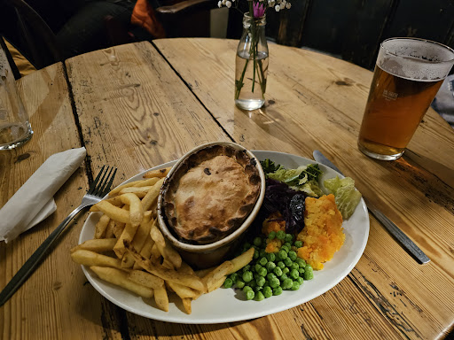 The menu offers a nice selection of simple pub grub. My meal was tasty and satisfying, and the portions were generous. The staff were friendly and helpful, adding to the overall enjoyable visit. One thing to note is that the menu isn't perfectly clear about vegetarian options, so it's best to ask the staff for details.