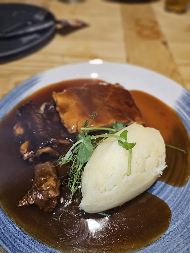 Visited on a Sunday lunch,called ahead to book and this was no issue. Pub is tucked away on a side road and parking is a bit of an issue but doable. The main door is literally on the road so extra attention if you visit with young children as road is narrow. Sat down and was seen pretty quickly, didn't receive my drink as it's was oos,wasn't told so had to ask again but this was rectified straight away. Upon placing order I asked if I could swap the braised cabbage for another vegetable or not have cabbage as I'm allergic to vinegar and was told no as all the vegetables are already portioned,found this a little odd as this was 12:30 and the first roast serving,had it been later in the day I would have understood but found it odd and not very accommodating to an allergy. We ordered beef and pork roast,both roasts were nicely cooked,the pork crackling was perfect and the beef nicely cooked but food wasn't as hot as I would've liked but nonetheless a nice meal.ordered desserts- sticky toffee pudding and banoffee pie,really disappointed with the golf size ball of ice-cream in my sticky toffee pudding and even more disappointed with being charged £2.50 for a very small scoop of plain vanilla icrecream for my little one, the banoffee pie was...