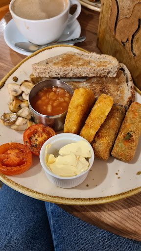 On my walk around the small town I noticed quite a few people heading into The Fox Tor Cafe and as I hadn't had breakfast and needed a drink I popped in. The cafe had a lively feel about it, tables were full and I received a warm welcome by the young lady behind the counter. I ordered a standard breakfast (bacon, egg, sausage, beans, mushrooms, tomatoes hash brown and toast with orange juice) all this for £9.75. Great value for money. I also ordered a cappuccino. The coffee arrived hot which is great (luke warm drinks is something I dislike) served by another member of staff, polite and friendly. The cafe was clean, tidy with local art work on the walls, cards and gifts to also buy and lots of information leaflets within the entrance area. The tables are well laid out, different sized tables depending on the size of your group with plenty of space between them. There is also an outside area with tables and chairs. Dog friendly - They allow dogs in the cafe, I saw 1 dog during my visit. It was very busy but not hectic, with a steady stream of customers. The staff were calm, organised obviously used to the pressures of a busy day. My breakfast then arrived. It looked and tasted great. It was hot, not greasy, egg was runny, the sausage and bacon sourced locally and the toast came from a farmhouse loaf rather than sliced bread. Although it was still busy I didn't feel rushed into leaving and once I had eaten my breakfast/drank my coffee I got up and gave my table to people patiently waiting. I left feeling full and satisfied, ready to walk up another tor. I would highly recommend this cafe to all for food and customer service. I'll definitely stop by again when I'm walking the Moor, thank you all for a great...