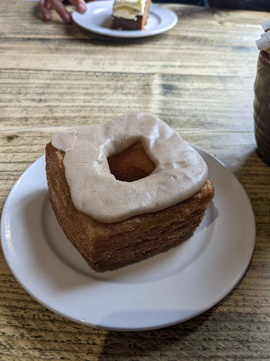 First time stopping here on our many trips to Cornwall. Would probably stop here again if we needed to. We stopped in on Easter Saturday, around 10.30am. Car park is small, but we managed to find a space. We popped to the loos - cubicles are a little on the small side, and there was a sign up saying that they were being refurbished, but we didn't need to queue. We then ordered drinks and 2 bacon and cheese croissants. I was able to add my own (oat) milk to my tea. Drinks arrived without lids, so that you can add sugar etc easily at the bench opposite the order bar. There were lots of people with dogs on and around the building, so they are dog-friendly, but there weren't many "dog bins" in the car park, so be aware if you get your dog out to stretch their legs. The one downside is the layout inside - plenty of seating, but it felt a bit chaotic when we were waiting for our order. There is a waiting area, but there was a family sat eating there, so we had to stand "in the way" of people going into the loos. I think they have done the best with the available space, and at a quieter time of day there probably wouldn't have...