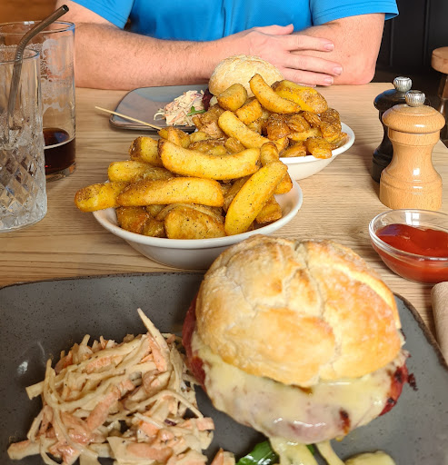 Read moreMixed review today, we both had the 50/50 burger, honestly felt like they had tried to add so many things that it didn't really work for me, also arrived with herby chips, not my cup of tea at all, hubby liked the chips but we both agreed didn't go with any flavours of the burger. I did mention this to the chef as we went to pay and he said had we mentioned this they would have made us up somr fresh chips, which was nice but we weren't once asked if everything was ok with our meal. Chef tried to take my feedback well but got slightly defensive stating I was the first person to dislike it in 3 years but couldn't help and think we were the only ones in the pub on a Saturday lunchtime over a bank holiday, maybe others are just voting with...