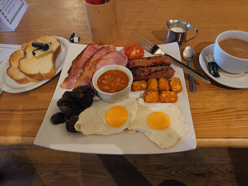 Did a little bit of last minute shopping in Ormskirk this morning, and remembered that one of my favourite little eateries had a very decent breakfast as an alternative to my regular Eggs Benedict. So I called in to see Sam and Tom, and then found a very cozy corner to while away an hour or so in. The nice thing about Bramleys is the way the staff treat you like a genuinely welcome customer, and I had the very good fortune to have the lovely Rose come sit with me for a few minutes to run through the menu and show me the Gluten Free and Vegan Options. Which is a very rare treat. A) because Rose is very beautiful and B) because other places don't usually have a gluten free menu. Or vegan options. So I opted for the gluten free toast, which was terrific. Mine always comes out like cardboard, but theirs was as fresh and delightful as normal toast. But again, there was no rush, no clock watching, no pressure to clear away and move you along. And it's nice to be treated like a valued guest where the excellent staff make you feel welcome and appreciated. So my five star award for the best mega breakfast in Ormskirk goes to Bramleys (and it was so good I forgot to get my selfie with a full plate, so here's an AFTER pic once I'd demolished the best breakfast of Christmas week 2023) Thanks Rose (I hope I didn't embarrass you "finding" that pound coin in your ear, but grandads will be grandads, and you did make me feel awfully special). Thank you. FIVE STARS (PLUS)...