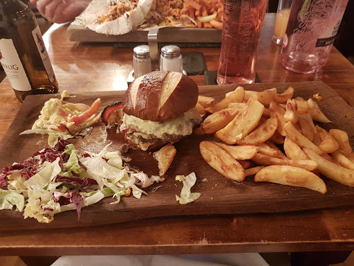 Presentation wise the food looked great. Maybe the pint of Guinness wasn't the best choice of beverage on this occasion, to accompany the food. But this aside, the portion sizes were good and it all tasted nice. The only slight let down was the quality of the steak strips. They weren't really done the way I asked and half of it was far too tough and chewy. The portion of fries was perhaps a bit too big also. But my partner loved her meal and overall we can't complain too much.