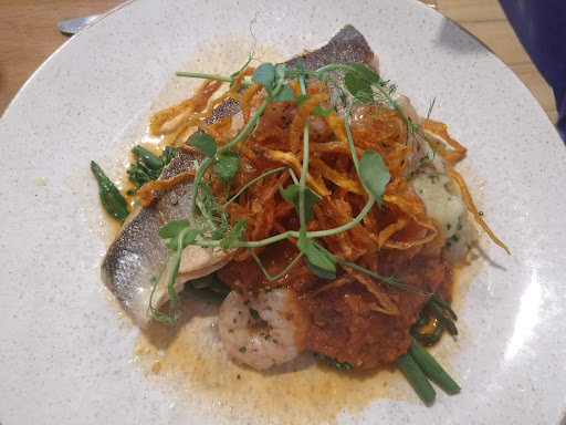 Read moreIt was very busy when we went, you have to wait to be seated which is fine if the girl who seats you explains how you order. We sat outside she gave us menus then walked off. There are no signs saying order at the counter or waitress service so it would have been nice if she could have stretched herself to explain it to us. I ended up finding a waitress and asking her and was told that it was waitress service but I could order at the counter if I wished which I did. We had coffee's and tea the waitress was lovely, then looked at the menu, in my opinion was overpriced. This is a cafe in a shopping centre but was charging restaurant prices £15.95 for a ceaser salad with chicken £11.00 without, so for a few leaves some parmesan a few croutons and some ceaser dressing that is ridiculous. Other main meals were around the £15 mark In saying that it seemed popular so obviously some people don't mind paying. My sister in law got some cheesy garlic bread which was quite reasonable at £3.95 and she received a large portion with a bit of rocket and drizzle. It has no atmosphere just a large room with tables and it's...
