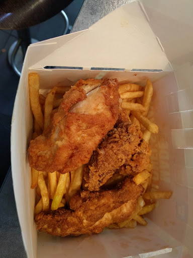 This was a fantastic restaurant to dine in at, easy to find from the large logo outside that looks more like old KFC! The counter has staff readily available, where I ordered the 2x Fillet Burger with Hot Wings and chips deal to share with a friend. This was priced suitably and it was delicious along with readily available sauces, cookie was yum too! The frames on the wall add well to the restaurant and cleanliness had been enforced.