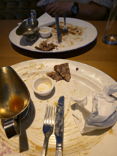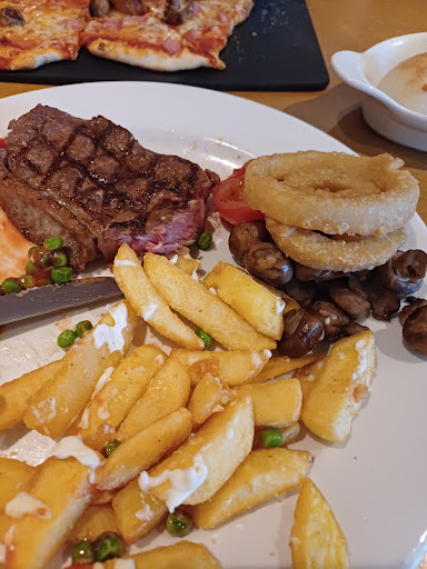 Read moreAwfully Walked in no immediate tables due to the quiz on . Was the choice of 4 tables that wasn't reserves . 3 I couldn't use as they were bar stools ( so not a disabled friendly welcome to start with) Attempted to use the order app - pointless . Went to the bar orderd the food . Told them twice how I wanted the steak . I orderd fries ( got chips ) . Sat at table waiting . Went to open the sauce bottle as the safety seal was still on it eventually came off whilst covering me in sauce now staining my tshirt wich has had to go in the bin!! . Food arrived as were sat in the child's area because nowhere else to sit ! . Onion rings cold Steak chewy I actually thought what I don't eat il save for the dog when I orderd it . Well not a chance would he be having any I left it all on the plate absolutely disgusting . Partners pizza ... well it arrived most mushroom pizza the mushroom are sliced... nope not here so you get full size mushrooms just stood to attention on the pizza like they are waiting for a drill Sargent to arrive . The pizza iv had thin pizza base , but jesus it wasn't even the thickness of a bit of paper . As we went to leave a couple arrived and said ohh we've come to try it after the last manager upset us . The girl on the bar said its a new manager .... as I left I told the couple don't waste ypur time look behind you you will see our plates . Worst food we have ever had . When leaving .. no thankyou goodbye from staff like they're used to be . Walling to my car I see a kitchen person stood in his kitchen uniform at the bin shed !!! Vaping and with a tea towel slung over his shoulder ! ... I'm sure environmental health would love that !!!!! Didn't asl for a refund as was never asked how it was and we thiight they clearly need the money as the staff need some training. Won't be back His chios arrived but we're supposed to be fries Mt partner usually books his Christmas party night out here spending £500+ he said not a chance this year he will...