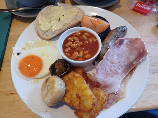 Read moreThis was my 1st visit & the entrance is a bit confusing as the front double doors which are located up a few steps are not in use & there's no signs pointing to the side door which has a sloped incline inside for any pushchairs or wheelchair users. Once inside its quite large with around 15 tables & it wasn't very busy. I bypassed the wait to be seated stand(whoops) & found a table for two,I didn't receive any interaction from any staff on duty.Menu sheets were already placed on the tables & i could understand why only about 5tables were occupied as the variety of options listed are quite expensive,Unsure what to do next ,since the table had no number ,I went to the counter to place my order& got asked did I want to pay ! Place an order was my reply & I got told they would come across so I pointed out my table,Within a few mins a regular Cappuccino, Breakfast Tea & 2 x portions of sourdough toast with added marmalade/Honey order was taken .The drinks didn't take long to arrive & the Cappuccino was a fantastic cuppa, lovely & hot aswel .I did venture to view the wonderful cake stand & it's offerings wile waiting for the food order. Unfortunately there was a very long wait for the toast to arrive infact I would of drunk my coffee long before if I hadn't saved a drop which was now barely warm .The toast was well presented & very tasty but the 2 small slices looked like it was 1 slice cut in half ,very disappointing portions. The toilets were nice & clean,the Gents doubles up as a disabled toilet. Cash or card payments are excepted. From my experience during this visit service timings need to have an significant improvement, Hate to think what the wait would actually of been if the place was...