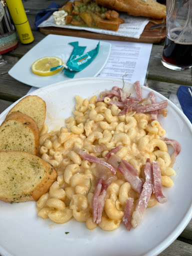 Read moreWe had the most awful meal at this restaurant last night. The mac and cheese was cold and resembled something from a tin, the added bacon was cold and undercooked. Not a sign of the parmesan crisp as outlined on the menu. The fish and chips were supposed to come with homemade tartar and chargrilled lemon and minted mushy peas. There wasn't a hint of of mint in the peas and the top of the photo shows the 'homemade' tartar sauce and 'chargrilled lemon'!!! The chicken burger was cold and dry with no tomato or gherkin in the bun as per the menu. We had to wait over an hour which was fine as we were warned of this. However we didn't expect after an hour to receibe sub standard cold food that wasn't as outlined on the menu. The bill was far from reasonably price do I can only imagine the margin they are making as most if it seemed to come out of a tin. Really disappointed and would never eat at this restaurant again, which is such a shame as it is the only...