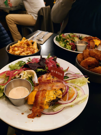 Ā Ā Ā Read moreThe food generally wasnāt bad. The burger itself was nice however I felt that it just wasnāt seasoned very much and had almost 0 flavour (five guys is much more tasty). I ordered the mac and cheese, which was really good, I ordered the sweet potato fries, which again were good but far too oily it made me feel a bit sick, and the coleslaw, which was great. Price wise the food was over expensive I thought. Compared to someone on our table who ordered the kids burger, I didnāt get a lot for my money. The kids meal was Ā£11 ish and they had the same amount of sweet potato fries as me, it came with a drink and a burger too. A little bit bad as my burger was Ā£15 and didnāt have barely any toppings inside and I had to pay for fries separately. I liked the idea of the QR codes so we could order the food through their website directly to our table, however a non removable service charge on top of the already expensive food was added on before we had even eaten anything. Service charges normally are paid at the end of the meal, so paying for one without choice at the start isnāt a good look. The milkshakes have hit a new time low, as I remember coming in after a day at college and there was giant milkshakes which the option to add Malt and various other flavours too, so a bit disappointed that they stopped something that I remembered to be a selling point. Other than that, it was very stuffy in there and a bit hot. Iām guessing that because itās an open kitchen and no one is more than about 4 metres from the hot pans. Maybe better air con? Maybe Byronās are going downhill? Who knows but the Norwich branch has permanently closed and, sadly, I predict Bury isnāt...