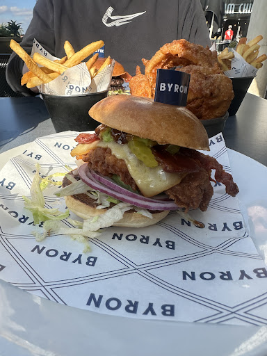 Read moreThe food generally wasn’t bad. The burger itself was nice however I felt that it just wasn’t seasoned very much and had almost 0 flavour (five guys is much more tasty). I ordered the mac and cheese, which was really good, I ordered the sweet potato fries, which again were good but far too oily it made me feel a bit sick, and the coleslaw, which was great. Price wise the food was over expensive I thought. Compared to someone on our table who ordered the kids burger, I didn’t get a lot for my money. The kids meal was £11 ish and they had the same amount of sweet potato fries as me, it came with a drink and a burger too. A little bit bad as my burger was £15 and didn’t have barely any toppings inside and I had to pay for fries separately. I liked the idea of the QR codes so we could order the food through their website directly to our table, however a non removable service charge on top of the already expensive food was added on before we had even eaten anything. Service charges normally are paid at the end of the meal, so paying for one without choice at the start isn’t a good look. The milkshakes have hit a new time low, as I remember coming in after a day at college and there was giant milkshakes which the option to add Malt and various other flavours too, so a bit disappointed that they stopped something that I remembered to be a selling point. Other than that, it was very stuffy in there and a bit hot. I’m guessing that because it’s an open kitchen and no one is more than about 4 metres from the hot pans. Maybe better air con? Maybe Byron’s are going downhill? Who knows but the Norwich branch has permanently closed and, sadly, I predict Bury isn’t...