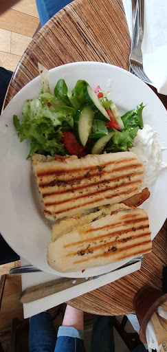 I've walked past this place so many times and always thought to myself how inviting it looks. I had been meaning to try it for some time and I was so glad I did. The food was fresh and delicious and it took me right back to some of the best times abroad visiting the Greek Islands. The photos I took really do not do it justice. I had a lovely Mediterranean chicken panini and the tazeki was so fresh and flavoursome it really accompanied the other flavours really well. I left with a smile on my face that lasted the rest of the day. I would also like to say that the portion size was absolutely spot on and great value for money. I wish I worked right near to here as it would definitely become a weekly lunch date for me. Top marks and I would have given more stars if I could fit more...