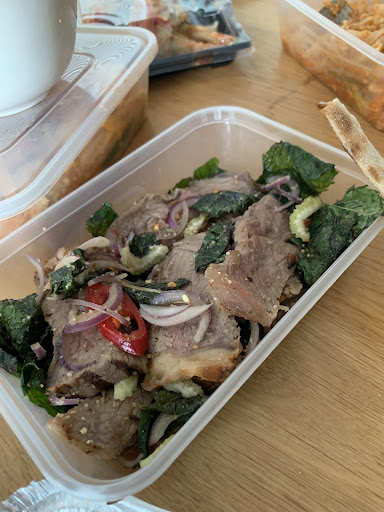 Drunken noodles: Incredibly bland Pad Thai: Also bland and tasted like it was made with a tomato-based sauce Beef salad: The meat was over cooked and the salad was a bed of mint? Tom Yum: This was the only thing that tasted decent. However, the shrimp was over cooked and it seemed like they used dried mushrooms