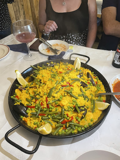 P.S.: If you are vegetarian, "patatas bravas", "patatas alioli", "tortilla de patata (Spanish tortilla)", and "paella vegetariana (veggie paella)" are a must! If you eat meat/fish, you should definitely go for "mejillones (mussels)", "croquetas de jamón (ham croquetas)", "pollo al ajillo (garlic chicken)", and "paella de marisco (seafood paella)" -- this was literally our menu, but there are many more meals you...
