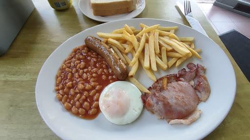 I purchased set Breakfast number one, which cost £9.00 and they do not charge extra if you have a can of drink instead of a cup of tea or coffee. The breakfast consisted of a fried egg, two rashers of bacon, a sausage, baked beans, a portion of chips and 2 slices of bread.