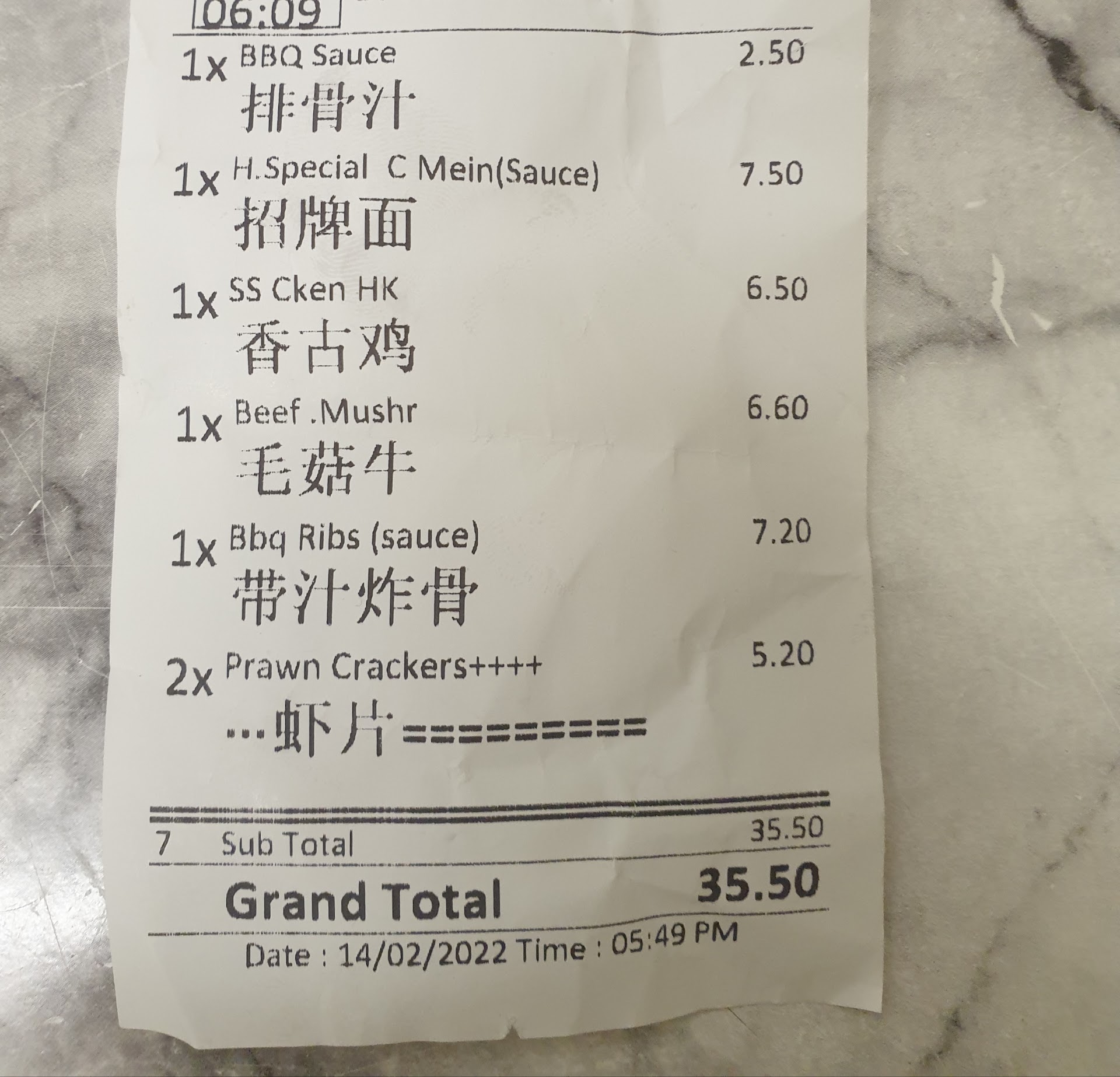 Read moreFood nothing special, but I can't complain anything was wrong with it. However for the price paid would expect a nicer dinner.I indeed think that I overpaid. Usually, I get my food at Pagoda house, they are fine, but I hate when they use old black mushrooms in their food. And feels like eating slugs. Going back to Peach Bower and Pagoda house, I would still prefer pagoda house. As Peach Bower Charged me a double of what I would have paid at Pagoda. Receipt is From Peach bower, another photo is From Pagoda house. See for yourself. Ogh and BTW, Why do I have to register onlibe in order to give you my money? This should be made more simple paying for food, without registering, unless you offer discounts for registered users, but that should...