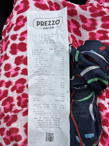 Yes back again yesterday, another fantastic meal for both of us, my pizza was huge, couldn't manage to consume it all so doggy box for the evening, the place was buzzing again. Staff again attentive, couldn't do enough for you, really nice to see, bottle of wine was enjoyable and didn't have to wait too long for meal to arrive. Overall excellent thanks again Prezzos will be back. Back again but this time we visited the ipswich restaurant, and just a walk in, staff were excellent and the food was brill lovely and hot perfect for me, couldn't resist the pizza I had the last time, wife struggled with her meal but did manage to finish loved every mouthful. Quite a trickle of customers and obviously some were regulars as staff new them as they arrived, thanks again...