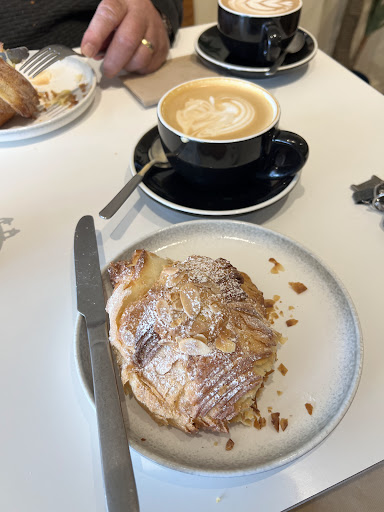 We had a latte and a mocha - lovely strong coffee here, and I had an almond croissant with my husband choosing a so called ‘morning’ pastry filled with creme pat. All in all a lovely experience / friendly atmosphere (you can sit outside too in a small courtyard). There is artisan - OK ‘posh’ bread to buy, along with local honey and delicious looking things.