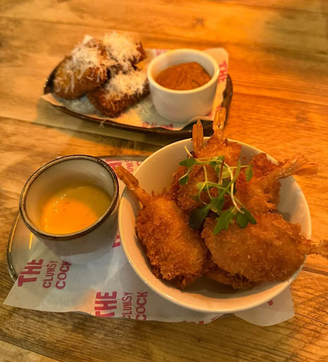 Wow. We were lucky enough to book a table at the Cock Inn (now called the Clumsy Cock) for a Sunday lunch over their opening wknd. The new team that have taken over have done a lovely job with their refurb with mixing a countryside pub with a modern & yet almost colonial feel. It really works. The lounge area (my favourite) with leather sofas, benefiting from the logburner in what looks originally to be a large edwardian fire place, makes this area particular welcoming. The food! Amazing, 100 fantastic. We had the roast dinner 3 meat sharer for 2, it was excellent and plenty of veg, meat and roast potatoes and the gravey was perfect. To be fair, we had to turn down the delightful desserts as the sharer filled us up! I particularly enjoyed the Localy brewed Nethergate lager before, during and after lunch!! The new owners along with their kitchen & bar team couldn't do enough for us, We've already booked a table for our return this coming wknd and will be going for the sharer again (and the Nethergate) and most importantly we felt we really got a lot for our money and our bill seemed very fair. Well done to all those...