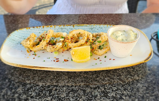 We began with two seafood starters: prawns and calamari. The prawns, sautĂ©ed in butter, chilli, and lemon, were a standoutârich, zesty, and perfectly balanced. The calamari, while tasty, didnât quite match the prawnsâ excellence. The batter was more tempura-like but lacked crispness, and the squid itself was sliced a little thin. Still, the flavor held its own and paired nicely with the seaside breeze.