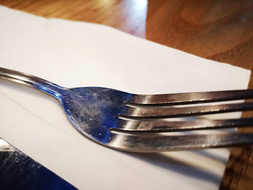 Rather annoyed, my husband looked for something else, but he couldnt find anything so we asked for a refund on 2 adult meals, as understandably, we didn't want just one of us not eating. So now we were not eating as a family. I was glad of this in the end, as I looked down at the cutlery, and that too looked dirty, it was disgusting.