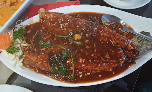 Read moreA nice Thai restaurant at the Railway station at the harbour. Everything was nice enough but not great. It's a bit hard trying to provide a reason why it's not worth stars but it's just not, in my opinion. Nothing was wrong or unpleasant, it was just OK. I had the Pla Rad Prik (£19.95) ie. sea bass in a spicey tamarind, garlic and chilli sauce, which was a bit too spicey for me despite it only having 1 chilli on the menu, which should have been mild. The fish was OK but I found a couple of small bones in it and the edge was very crispy. The chilli dip with the Golden Parcel starters (£4.95) was also a bit too hot, but the egg fried rice was lovely, one of the best I've tasted. My friends had the set menu for 2 (£24.95 each) and choose the red curry, which was again, a bit too spicey for one of them. They loved the beef in oyster sauce and mixed vegetables. This is a cash only place so make sure you have...
