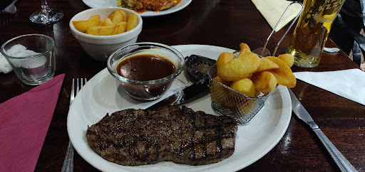 Starters came, while the person was serving he was trying to carry multiple meals at a time and dropped one all over my partner and myself. This has stained his brand new white polo shirt and my jeans. This meal was replaced but still shouldnât have been dropped in the first place as the person who had to wait for there starter was eating when the rest of the table was finished.