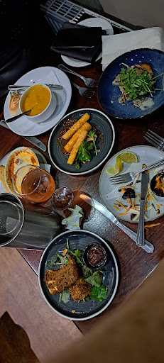 Starters came, while the person was serving he was trying to carry multiple meals at a time and dropped one all over my partner and myself. This has stained his brand new white polo shirt and my jeans. This meal was replaced but still shouldn’t have been dropped in the first place as the person who had to wait for there starter was eating when the rest of the table was finished.