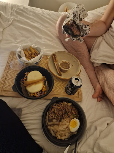 OMG! TOO TOO GOOD!!! We randomly ordered through Just Eat and OMG... The ramen broth is deep and rich, the beef..like it was born with flavouring!! What did you guys do to the cow?? 🤣 And then we tried the beef rib burger. The bone just slides off smoothly, the meat 12/10, just perfect! Better burger than Almost Famous. Really. Next, we had the Southern Fried Chicken Bao. I promise you this review is not endorsed, but omg you guys, what are you doing in Leigh?? (But PLEASE STAY) Last but not least, the fries (or chips, for u brits) made it through the delivery and still so crispy it woke up our dog! We dipped the fries into the heavenly peppercorn sauce, which i could drink like a shot!