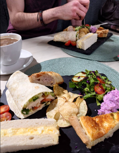Read moreFor a special birthday treat. £36, I expected better and left a little disappointed Pre booked. We were asked about drinks on arrival to the counter before sitting. My pregnant daughter asked for bottle water. After sitting. 5 minutes later, the waitress brought over a glass of tap water, a tea pot and cup then away she went without a word. A bit later the food was put on our table and off she went, same again. The food, was a one finger sandwich, half a wrap, a sausage roll and a soggy quiche. Cakes were small as normal on an afternoon tea with a currant scone, (not warm) ready filled with whipped cream and jam. It was ok, similar to some others I've had but nothing felt nice, it wasnt special. The atmosphere was a packed cafe with a rushed off their feet young waitress. We weren't once asked if we needed anything else or approached again. We just ate and left and we could have done that with soup...