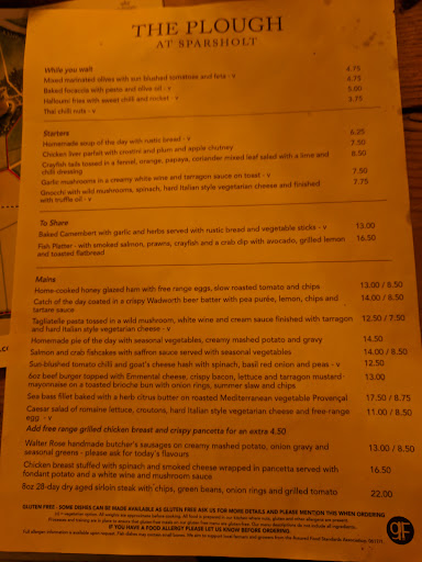I have lived in Sparsholt for many years & seen The Plough through quite a few changes. In my opinion, the pub has now completely lost it's way & is a shadow of its former self. Hard to know where to start! So I'll start with 2 things that annoy me the most. Firstly, meal are served on the cheapest catering style crockery that has been round the block (or dishwasher) a few times. Very unprofessional & short-sighted. Ever heard of presentation? Secondly, how is it that other forward looking pubs can update their public furniture whilst The Plough carry on with chairs & tables that should be thrown in the skip? We're not fooled, they aren't vintage....just rickety & very uncomfortable. Food - the menu has been cut right down whilst prices have gone up. In general the food is not unpleasant, just nowhere near the quality it used to be before it changed hands. Big mistake, your core customer base is going to dwindle quite rapidly.... Service - had supper with a wedding party last week & all very uncomfortable with the overt 'chumminess' of the waiter. He may have thought it amusing but we found it creepy & totally unappreciated.