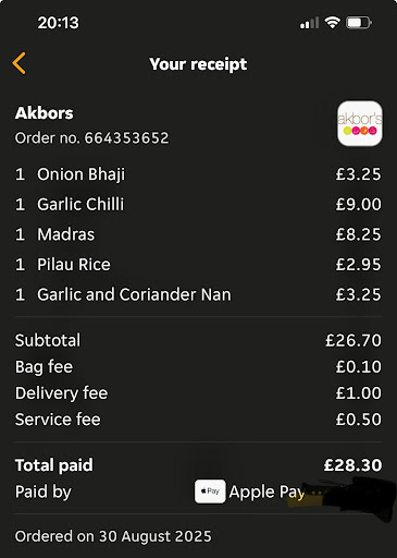 I ordered X2 Butter Chicken and X2 Naan bread for delivery to Hoylake. When it arrived I opened it and my first thought washing 'is this butter chicken?' because the colour of the sauce was yellow. I then opened the Naans and found them cold and soggy from condensation. The butter chicken itself did not taste like any butter chicken I've ever had before. It was like a melted block of butter and £1 peanut sauce with water, it was also so sweet I couldn't finish the sauce. The chicken was okay although if I had an alternative meal I would've chosen it. Either something went wrong in the kitchen tonight or I was given the wrong meal. I recommend against odering takeaway as the food was barely warm when it arrived. Dissapointing for £18.