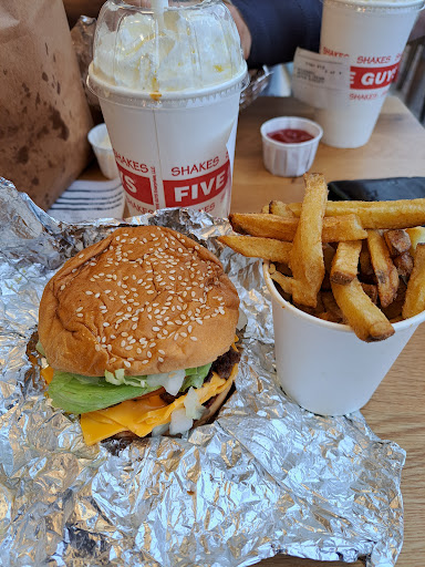 Read moreMy first ever Five Guys experience. Newly opened Bromborough Outlet. I had heard a lot about Five Guys from other people, 2 things always stuck in my mind from what people hsd told me : nice burgers but expensive. So I just had to check it out for myself. The staff at the tills were very friendly and helpful. As it was our families first visit they explained the options regarding the burger toppings and the size of the fries portions. We all opted for burgers with various toppings, also Five Guys shakes all round. The shakes are also available with many flavour options. I went for banana and peanut butter topped with whipped cream. The burgers where tasty and cooked well with no dryness in the meat. Patties are top quality. Fries where nicely cooked with skin on and seasoned well. So here goes the cost for myself, my wife and twin boys.............£74.30. So basically this was an expensive hour in a burger joint. I have now experienced Five Guys but I do not think it will be a regular occurrence for us. So I agree......Nice burgers but expensive. I would reccomend everyone to try it even if its...