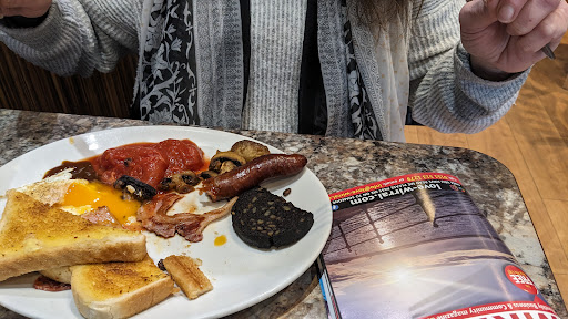Food was extremely greasy & when I approached staff, she was extremely abrupt, telling me that it's all cooked in it's own juices.. So I was imagining the grease that came from the mushrooms, Ulster fry, the grease/oil on plate? Also, on your menu, it says 'Served with endless tea, coffee or orange juice' where does it say one or the other????? Also, speaking to a customer like crap when they're being polite & pointing something out to you, is neither courteous OR professional, especially when they'd been discreet... Speaking loud enough for other customers your...