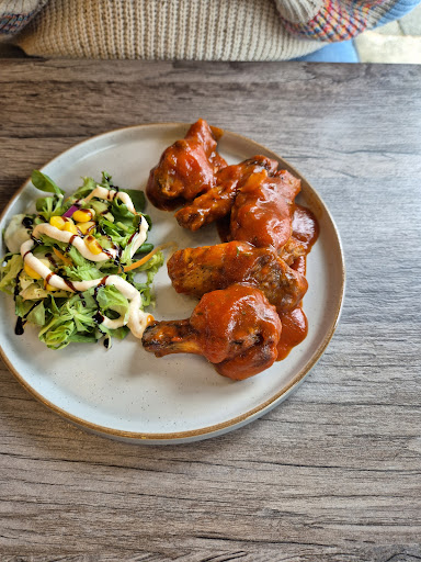 My wife's chicken wings where cooked well. The chicken was good and not dry. The sauce i assume it was homemade as it was extremely tomatoe heavy and it bordered on a bolognese sauce rather than a BBQ but enjoyable nonetheless.