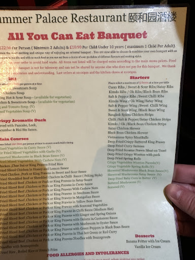 Read moreCame here for the first time on Friday last. 4 of us who can all put a meal or two away. I have to say that I am only sorry I have not discovered this venue before. Lovely décor, excellent service from lovely waiting staff and possibly the best Chinese food that I have ever tasted....and I've tasted a lot!Such a nice change to have the food cooked to order and brought to the table instead of languishing under a heat lamp, being pawed by all and sundry and being coughed, sneezed and mixed up by a monotonous line of dirty handed customers!The atmosphere was really pleasant and if I was to have a gripe, it would only be that the bar prices could do with reducing by about 25%. A pint of Stella, a pint of John Smiths and a diet coke for £10....bit pricey that guvnor. However, all you can eat for £16.90 per adult?. No complaints here and I will certainly return in the not to distant future. Mrs. Smauf wanted to return the next night in...