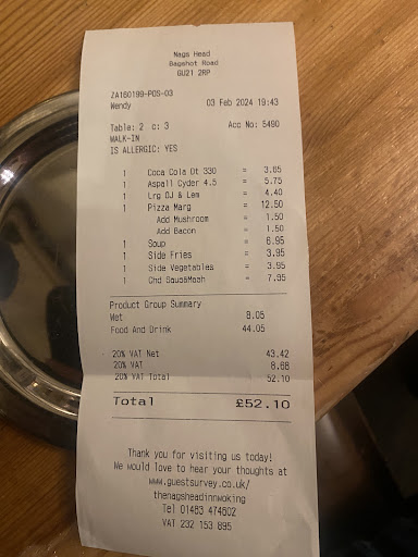 Quite possibly one of the poorest value for money pubs in the local area and, disappointingly, the food was poorly prepared. Considering the prices, I was expecting more than the meagre portions that were served.