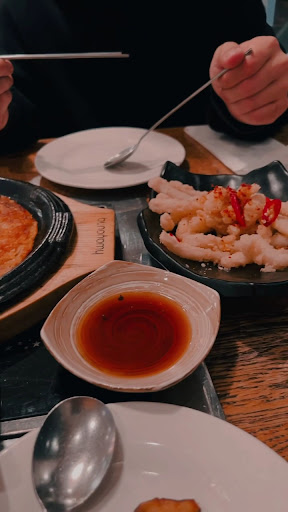 Korean Spicy Crispy Squid 🌟🌟🌟🌟 Spicy crispy Squid is my all time favourite! 🤪 and it taste really good! You can see they look golden colour which is very perfect 😍 they put some chilli power on top so it wasn’t very spicy but you will like it. They also provide some salt with chilli powder mixed together and it is really good with the squid.