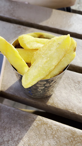 At the table we discovered no menus. I had to go back to her to ask, she handed me 2 menus but one was for drinks so had to go back again for the other one. I asked if we had to order drinks at the bar, & she said yes and your food. Ceaser salad was swamped with sauce! My partner enjoyed fish & chips for almost ÂŁ20!!!!