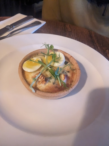 Read moreWe had a wonderful anniversary meal at the Drumming Snipe. The service was really good, the waitstaff were friendly and efficient, making us feel so at home. We started with the asparagus and poached egg, and the roast coronation crab. Unfortunately, the asparagus was slightly overcooked but the egg was perfect. Additionally, the coronation crabs’ flavours did not work well because there was an overall taste of lemon and curry which overpowered the delicate crab but these are issues that can be improved. However, the main courses were exceptional. We had Atlantic Cod with cockles and Double Chuck and Rib Burger with fries. The burger was on par with the best I’ve ever had - absolutely delicious. Everything went together perfectly, and those triple cooked chips - well, I had to fight my husband for them. We ended our meal with Sticky Toffee Pudding and White Chocolate Cheesecake, both desserts were amazingly good and not oversweet which is sometimes the case with rich desserts. They also surprised us with a slice of their dark chocolate fondant tart with a happy anniversary message, it was so kind of them and again was a delicious dessert. We will definitely be returning to this restaurant and are happy to recommend it to others for its excellent food...