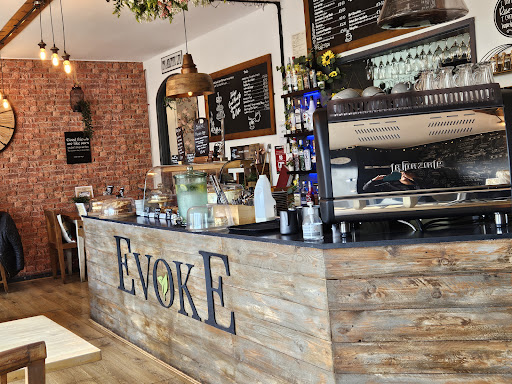 A popular place for good quality, tasty, well presented food. Ideal if you have gluten-free, vegetarian requirements as very helpful and accommodating. We chose the specials today with a lovely hot chocolate and an English breakfast tea. My gluten-free friend chose the special...'Crushed Minted Pea and Poached Egg on Sourdough Bread. I chose the 'Shakfhouka': spicy tomatoe & peppers with poached egg, served in a bowl with a nan bread. They were both delicious. It was lovely, flavoursome, and a nice change for me to have a vegetarian dish. For dessert, my friend had a slice of the 'Naughty Chocolate Cake (gluten-free)', and l had the 'Lemon & Blueberry Cake'. I would highly recommend Evoke as a lovely place to eat quality, tasty, freshly...